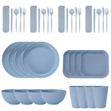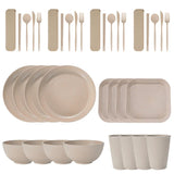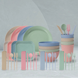 Our 36Pcs Eco Friendly Tableware Set is crafted from natural wheat straw fiber and BPA-free food-grade PP, making it a safe, durable, and sustainable choice for your family. Designed to replace traditional plastic and disposable sets, this collection of plates, bowls, cups, forks, and spoons is reusable, stylish, and practical for everyday dining.